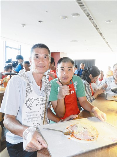 【記者李祖翔台北報導】父親節爸爸們最渴望獲得的禮物是現金和國、內外旅遊,但根據第一社會福利基金會調查,障礙兒家庭有四成四從未出過國,近一成從未帶孩子出遊!為了慰勞辛苦的爸爸並讓媽媽喘息,基金會昨與餐廳合作,邀二十五對父子品嘗異國美食,一起做披薩,還分享出國旅遊經歷,讓他們覺得被重視。