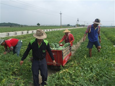 颱風來襲,沿海各縣市農民分秒必爭搶救收成。圖/蔡維斌