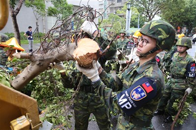 【本報台北訊】中颱蘇迪勒帶來強勁風勢及雨量,導致台北市區4726棵路樹倒塌、阻礙交通,為搶在明天上班日前恢復幹道順暢,400名國軍投入支援行動,尤以大安、中正、松山及信義區兵力最多。