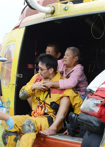 颱風蘇迪勒重創新北市,烏來對外交通中斷成孤島,政府動用直升機深入烏來載運病患並空投物資。圖/中央社