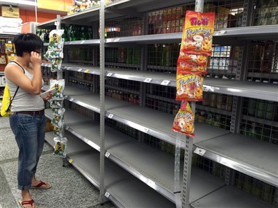 颱風蘇迪勒過後,由於原水濁度太高,新北市部分地區自來水混濁,還有許多用戶停水。昨天大賣場礦泉水販賣區被民眾搶購一空。圖/中央社
