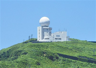 五分山雷達站「天線罩」被蘇迪勒颱風掃落,不見了。圖為未被蘇迪勒侵襲前的五分山氣象雷達(圖/中央社)。