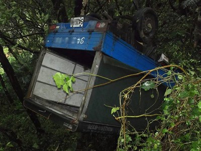 【本報新北訊】在蘇迪勒颱風過境後,53歲患有小兒麻痺的童姓男子,攜子到新北市萬里市區賣水果,由於颱風後路況不佳,童父欲駕駛小貨車返回萬里崁腳住處時,疑似未注意車前狀況,加上身體有些不適,遇彎煞車不及,父子倆連人帶車翻覆山下,所幸坐在駕駛座旁的9歲兒子自行脫困,急忙跑到馬路上求援救父。