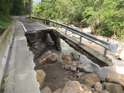 12鄰聯外道路此處路面、路基已被山洪沖毀。圖/林昭彰