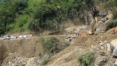 新北市新烏路日前嚴重崩塌,警方為確保救災道路順暢,今天在新烏路沿線設置7處交通管制點,管制車輛進出。圖/資料照片