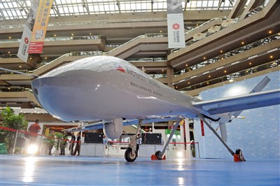 【本報台北訊】「2015年台北國際航太暨國防工業展」明天登場。由國家中山科學研究院自主研發的「大型無人機系統」首度公開亮相。此款無人機具備自主起降功能,可執行情蒐、監視等任務。
