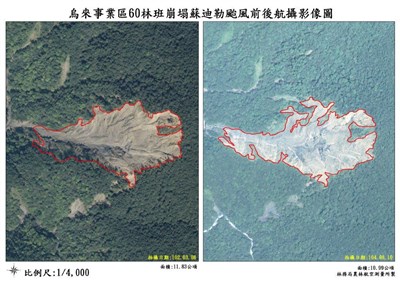 【本報綜合報導】林務局今天下午出具蘇迪勒颱風前後,東札孔溪崩塌地的航空攝影影像圖,該圖顯示該地在颱風過後,崩塌面積比2年前還小0.84公頃,應該不是造成本次台北自來水濁的原因,林務局表示,台北自來水濁應該要探討,是不是本次南勢溪新增的5處崩塌地所造成的才對。