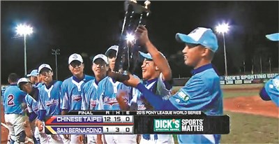 小馬青少棒 中華隊奪史上第7冠 |2015.08.13 語音朗讀 717觀看次 字級 大 中 小 中華隊贏得小馬聯盟青少棒冠軍,球員開心高舉冠軍杯。圖/取自小馬聯盟臉書 【本報綜合外電報導】小馬聯盟青少棒賽冠軍戰今天登場,由桃園新明、仁和、龜山3校組成聯隊出戰美西,台灣總共敲出15支安打,以12:1大勝美西隊,奪下小馬聯盟世界青少棒冠軍,這也是台灣史上第7座! 前一篇文章 天津爆炸6消防員殉職 隊友邊哭邊救火 下一篇文章 天津爆炸如21噸炸藥 太空都看得到 熱門新聞 01【閃文集】火星暗斑之謎2025.12.1602【詩】草螟公2025.12.1803【為人父母】 允許如其所是2025.12.1504【詩】 航夢2025.12.1505東方微笑跨越千年 麥積山石窟現佛館2025.12.1506寶塔寺 三代同堂搓湯圓、繪燈籠2025.12.1607佛光山福國寺 獲頒台南市宗教績優團體獎2025.12.1508高雄新航線明啟動 佛光山成亮點2025.12.1709如何優雅不濺水花?2025.12.1610人間佛教在菲律賓2025.12.14 訂閱電子報 台北市 天氣預報 台灣一週天氣預報 相關報導 【星雲大師如是說】處事禪心【星雲大師如是說】人間佛教【星雲大師如是說】正信之美【星雲大師如是說】輪轉相繼【星雲大師如是說】有情的層次【星雲大師如是說】六忍歌