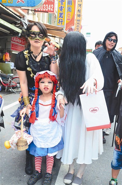 宜蘭縣五結鄉立托兒所的萬聖節變裝遊街,有媽媽將女兒打扮成可愛的「桃樂絲」,自己卻不顧形象變裝成「貞子」。圖/資料照片