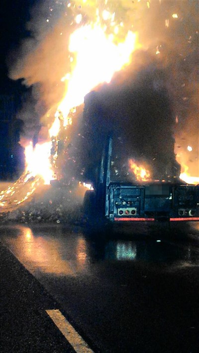 【本報屏東縣訊】今天是農曆7月初一鬼門開的日子,屏東國道3號麟洛段北上車道,凌晨2時許,1輛載著紙錢的拖板車,車上紙錢突然燒了起來,臉書上議論紛紛,大家都說「好兄弟搶錢」。