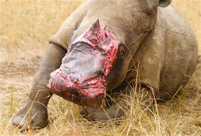 據指出,這頭12歲的母犀牛5日在南非夸祖魯納塔爾省的龐戈拉生態公園遭到射殺後倒地,盜獵者隨即切下牠的一隻犀角,研判可能母犀牛隨後站起來,未及切下第二隻犀角即逃離現場。