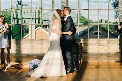 這張照片近日由國外一名網友上傳,上傳後並在照片下寫道,其妹日前在參加一場婚禮時,擔任伴娘群之一的她,在主婚人說「你(新郎)可以親吻新娘」的那一刻,突然昏倒了。這一幕剛好被攝影機捕捉下來,成功搶鏡變成全場焦點。