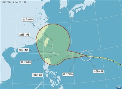 【本報台北訊】天鵝颱風已經達到中颱上限,氣象局說,若依照目前路徑,周四(20日)入夜到周五(21日)就會發布海上颱風警報,周六到周日則是颱風最接近台灣的時候,民眾要做好防颱準備。