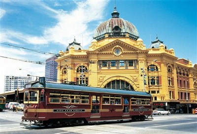 圖為墨爾本市區電車於著名地標福林德斯火車站前。圖/資料照片