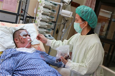 北榮重症醫學部主任周嘉裕表示,這些傷患年輕力壯,新陳代謝佳,所以手術恢復情況良好,再加上醫療資源充足、全力救治,「白蛋白像水一樣打。」才能這麼快降低燒傷面積,穩定病情,轉入普通病房後,就要開始面對復健的漫漫長路。