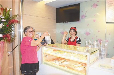 「淑宜的幸福小棧」學員蔡媽媽與顧客互動。