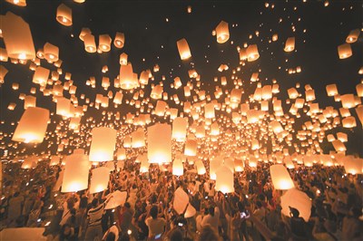 每年11月的水燈節是泰國全年觀光的重頭戲之一,圖為當地Nawarat橋周邊水燈齊放的壯麗景象。圖/資料照片