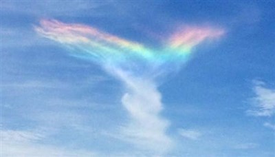 火彩虹又稱「日承」,與一般彩虹的差別是形成高度至少6100公尺以上,非常少見。圖/取自網路