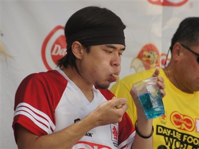 徹斯納特去年吃掉384個煎餃,拿下冠軍並打破紀錄;但是史托尼上個月在熱狗大賽中止了徹斯納特的8連霸,吃煎餃大賽也成為兩人再度決戰的舞台。史托尼與徹斯納特一開始就拋開其他對手,大把大把地吞下煎餃,腮幫子鼓得滿滿的,速度完全沒有慢下來;最後兩人只相差4個煎餃,史托尼以343比339,再度擊敗徹斯納特,連兩項大賽抱走冠軍。