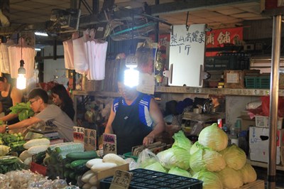 今天傳統市場菜價與昨天差不多,一把葉菜20多元買得到,雖然比沒有颱風的10多元貴,但以台北市物價來說,一個便當動轍百元上下,颱風天一把菜20多元,仍在可接受範圍。