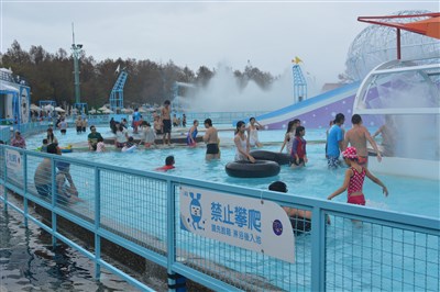 遊客趁著童玩節最後一天來園區戲水。圖/鍾知君