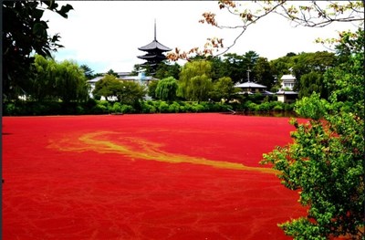 【本報綜合外電報導】日本奈良公園是觀光客到關西旅遊經常會到訪的旅遊聖地,又以數量眾多的鹿群聞名,但竟來奈良公園卻出現了「血池」奇景,讓遊客嘖嘖稱奇外,也好奇這片血池到底發生了什麼事?