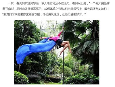大陸《華西都市報》報導,戴大麗4年前開始學習鋼管舞。幾年來每周都到舞蹈學校和年輕女孩們一起學習。今年的比賽,高手雲集,作為場上年齡最大的舞者,她一舉奪下金獎。