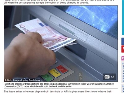 DCC可讓消費者選擇是要以當地貨幣結帳,或以英鎊結帳,若按下同意鍵,銀行就可以對該筆交易使用DCC機制,使用自己偏高的匯率。