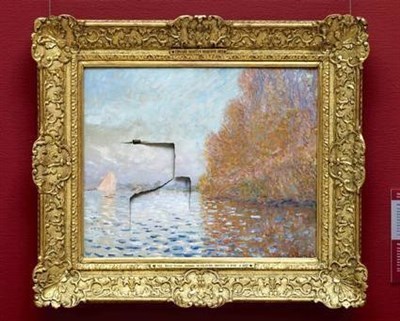 2012年,印象派大師莫內作品《阿讓特伊流域的孤舟》,珍藏於愛爾蘭國家美術館,卻被1名男子一拳打出一個大洞,嫌犯因此遭判,這幅畫價值約4億新台幣,修復師共花了18個月才讓它恢復,但仍有百分之7的部分無法修復。
