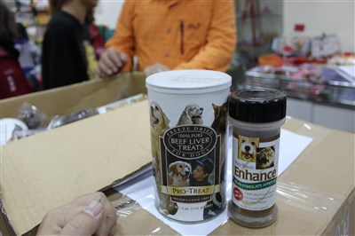 新北市消保官及動物疾病防治所人員,昨天在三重市一家寵物店,查到一批由美國牛內臟製成的狗飼料。圖/資料照片