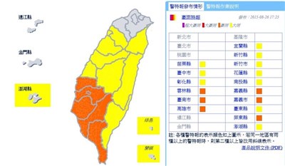 氣象局說,除了雲林以南要防豪雨外,新竹以南地區、東半部及澎湖也會有局部大雨,提醒民眾注意瞬間大雨、雷擊及強陣風。