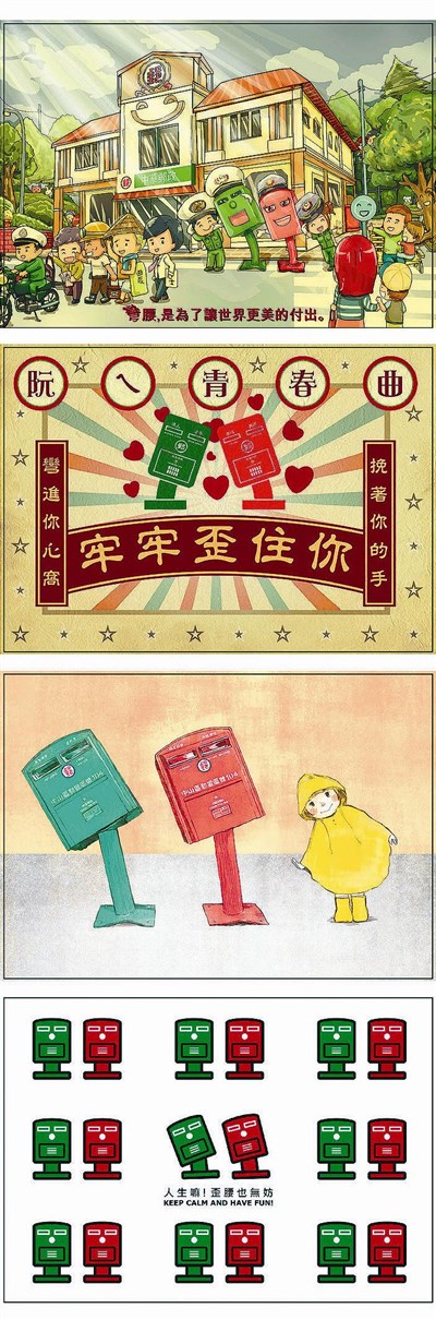 彎腰郵筒明信片 kuso上市 |2015.08.27 語音朗讀 1959觀看次 字級 大 中 小 蘇迪勒颱風讓台北市龍江路的郵筒因歪了腰而爆紅。台北郵局挑選四種不同的創作,明天將發行「歪腰郵筒kuso創意明信片」,限量一萬組,每組有四張,售價二十元。圖/台北郵局提供 蘇迪勒颱風讓台北市龍江路的郵筒因歪了腰而爆紅。台北郵局挑選四種不同的創作,明天將發行「歪腰郵筒kuso創意明信片」,限量一萬組,每組有四張,售價二十元。四張創作主題包括:「彎腰,是為了讓世界更美的付出」、「阮ㄟ青春曲—牢牢歪住你」、「彎腰郵筒—黃綠紅」、「人生嘛!歪腰也無妨」,描繪出歪腰郵筒的各式萌狀。圖/台北郵局提供 前一篇文章 10筆爭議黨產 藍:處理完畢 下一篇文章 家事移工 擬下月起薪1.7萬 熱門新聞 01點亮慈悲光明 雲林講堂觀音燈會啟燈2026.02.1202加拿大祈禱早餐會 跨信仰凝聚共融2026.02.0903【閃文集】我愛鬱金香2026.02.1004佛光山印尼佛教學院 跨校簽MOU2026.02.1005花蓮.萬榮 林田歲月話古今 祖靈之眼護萬榮2026.02.0906【斗室有燈】返鄉過年的道途上2026.02.1307星雲大師全集【經義】佛法滿人間—和而不流2026.02.0908陸多地開兩會 機器人記者忙跑新聞2026.02.1009《化為千手》醫者路 黃致錕為病友證婚2026.02.1410開春送禮籃 新加坡佛光山溫暖社區 2026.02.09 訂閱電子報 台北市 天氣預報 台灣一週天氣預報 相關報導 台美貿協敲定 學者:短空長多 4年42.5億元 助中小微企業升級賴率三軍司令 催速審國防預算涉貪汙 高金素梅住辦遭搜索新春換新鈔 全台455據點可兌換海鯤號潛航畫面曝光 試射自衛誘標 作者其他文章【法相莊嚴】佛像藝術與信仰美新國防戰略未提台灣 抗中非優先任務綠色文化旅遊 身心健康新選擇優化大腦 自我實現心理投射現象解析從潮流到商機 流行文化吸引力