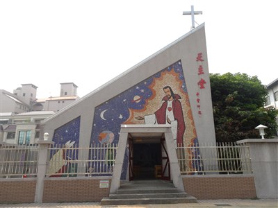 嘉義市天主教聖奧德教堂的特色是斜頂式建築以及馬賽克宗教藝術創作。圖/資料照片