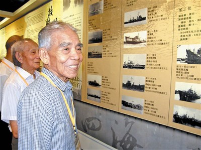 馬總統昨日到左營海軍基地主持海軍史蹟特展開幕典禮,並頒贈八名抗戰老兵抗戰勝利紀念章。老兵說「仗是我們打的」,中共歪曲事實,連戰到大陸出席閱兵,應詳加辯解。圖/中央社