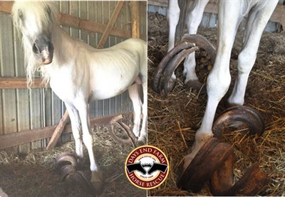 3匹馬被關在馬廄裡15年,馬蹄成螺旋狀,長度超過91公分。圖/取自網路