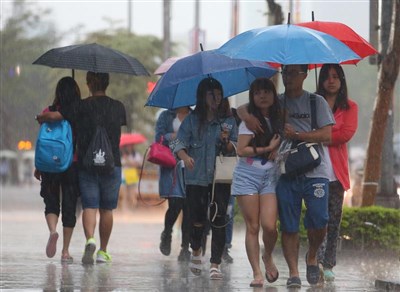 【本報台北訊】午後對流雲系發展旺盛,中央氣象局下午針對全台12縣市發布大雨特報,北部山區、中南部山區及東北部山區,有局部大雨發生的機率,請民眾注意瞬間大雨、雷擊和強陣風。
