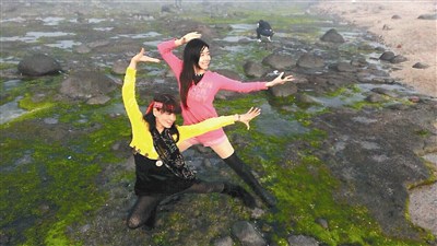 葉宜蓁(前)熱愛舞蹈,和女兒隨處隨時都能擺POSE拍照。