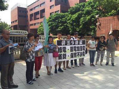 環團今天上午到營建署前高喊「我要排雲、不要排碳」,抗議排雲山莊供電案。圖/侯俐安