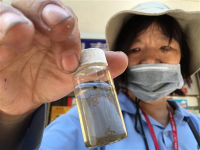 高雄市登革熱疫情增溫,市府跨局處投入防疫,衛生局今天前往三民區,密集在發病病例周邊噴藥,發現埃及斑蚊的幼蟲孑孓。圖/中央社