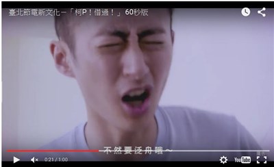 【本報台北訊】繼九一記者節台北市長柯文哲扮主播,拍攝短片慶祝記者節後,柯文哲又有最新作品,北市環保局今天舉辦台北市節電戰略記者會,會中放映柯文哲為宣傳節電策略拍攝的宣導短片「節電新文化」,短短1分鐘短片,請來泛舟哥一同與柯文哲尬戲,短片活潑有趣,放上網路後也引發網友熱烈回響。