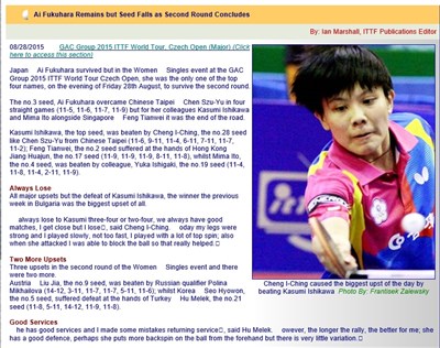 鄭怡靜8月底擊敗日本「一姐」石川佳純,好表現躍上ITTF官網。 圖/取自網路