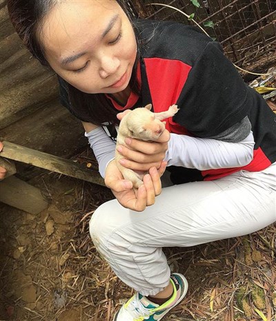 【本報台中訊】體重只有46公斤的台灣動物緊急救援小組義工楊士儀,鑽入高度不到30公分的坑道內,救出受困的狗媽媽和6隻剛出生的幼犬,並將牠們送往動物醫院安置。
