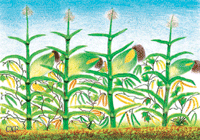 蓮花、稻子、向日葵、蝴蝶、蜻蜓、狐狸……一棵棵植物,一隻隻動物,就在老人不太熟練的蠟筆下,絢麗生動地呈示出來。孫女兒樂了,老太太也開心了。