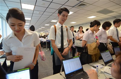 不少對航空業抱高度期盼的考生,於桃園機場附近的華航園區參加第一階段初試,華航預計19日將進行第二階段複試。