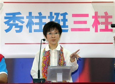 國民黨總統參選人洪秀柱上午舉行「秀柱挺三柱」政策記者會,提出多項政策,並承諾如果當選總統,將終結過勞警消、流浪教師與血汗護理師的現象。圖/胡經周