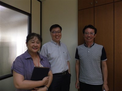 台電材料處副研究員孟祥國(中)改革台電採購模式,5年省下公帑138億元,獲選模範採購人員,他不居功,拍照時堅持拉材料處採購一組組長陳淑慧(左)與科長吳朝文合照。圖/游智文