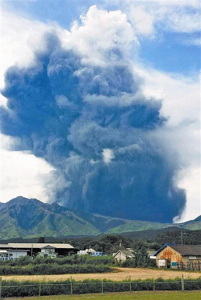 【本報外電報導】日本熊本縣知名景點阿蘇山中岳第一火山口昨日上午爆發,噴煙達兩千公尺,三公里外的阿蘇火山博物館約百名日本及台灣、南韓的遊客立即搭巴士下山,日本氣象廳把火山警戒提高到火山口周邊兩公里勿進的第三級。
