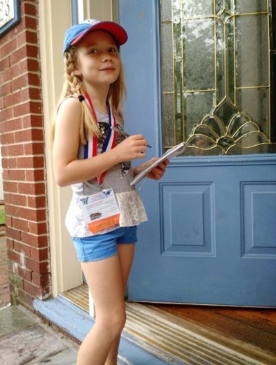 美國賓州8歲女童希爾迪林夏克發行《橘街新聞報》,成為當地話題人物 。圖/取自網路