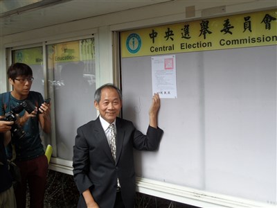 中選會主委劉義周上午發布總統、副總統選舉公告,並在中選會布告欄張貼,表示總統選舉法定日期正式啟動。圖/李順德