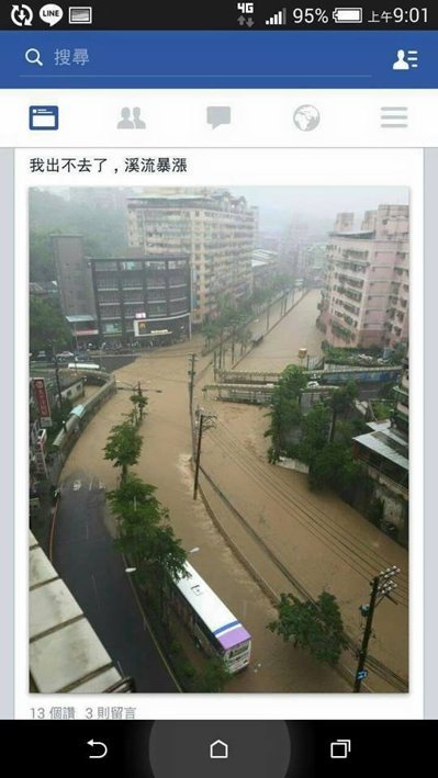 有名網友貼出在「爆料公社」上貼出基隆大武崙淹水影片,摻滿泥土的黃水淹滿整條路,還有人貼出了照片,發文說「我出不去了,溪流暴漲」。
